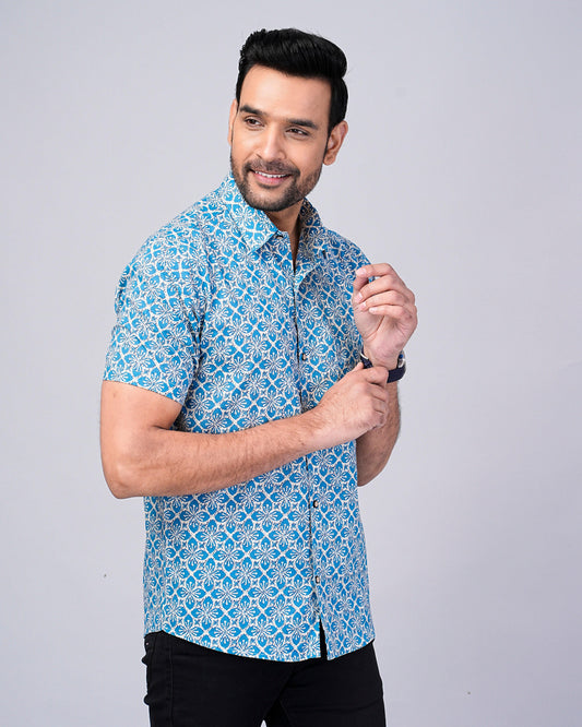 Men's Ethnic Indigo Printed Half-Sleeves shirts
