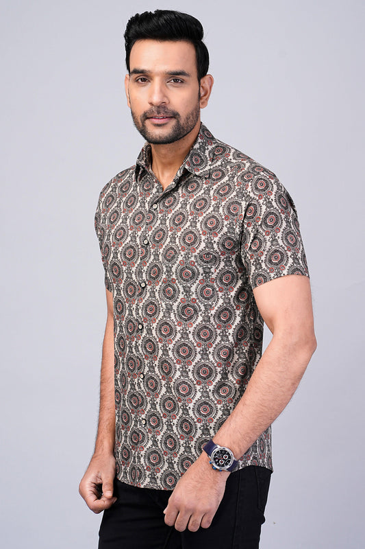 Men's Ethnic Motif Printed Half-Sleeves shirts