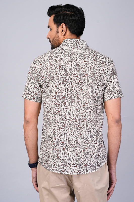 Men's Ethnic Leaf Printed Half-Sleeves shirts