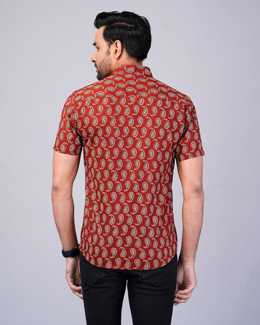 Men's Pink Paisley Printed Half-Sleeves shirts
