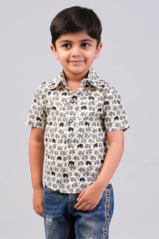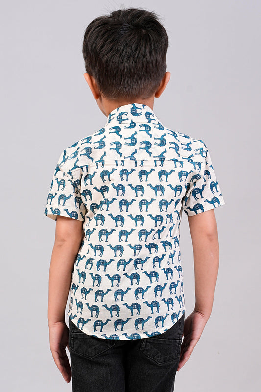 Boy's Camel Printed Half-Sleeves Shirts