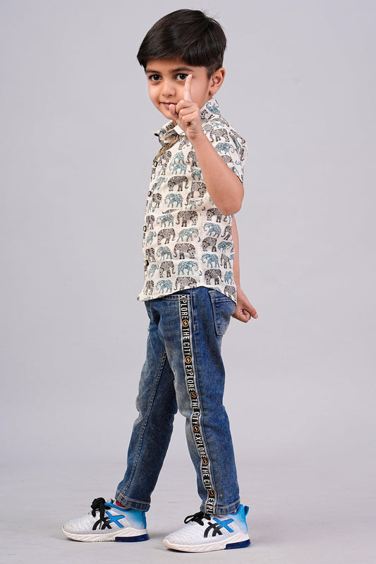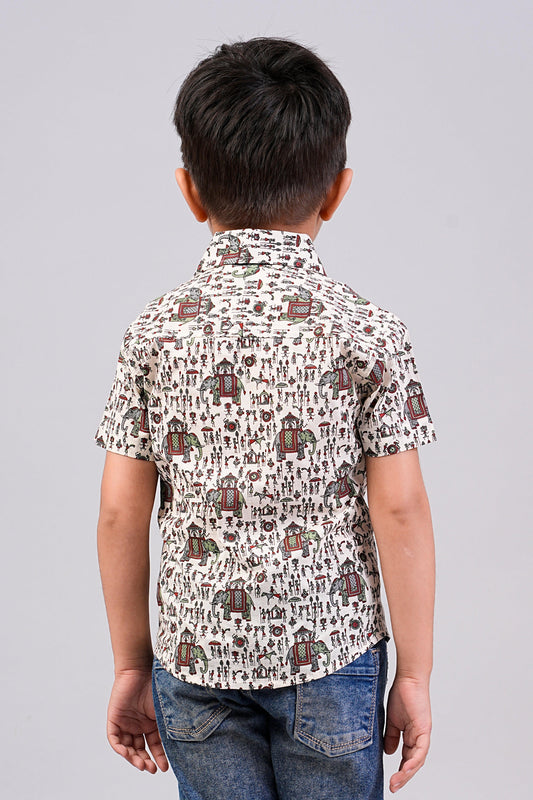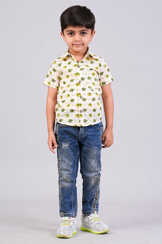 Boy's Elephant Printed Half-Sleeves Shirts