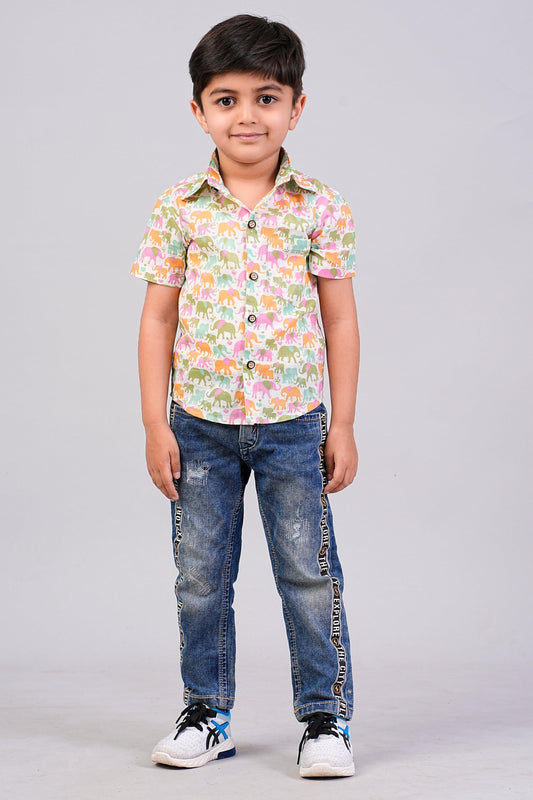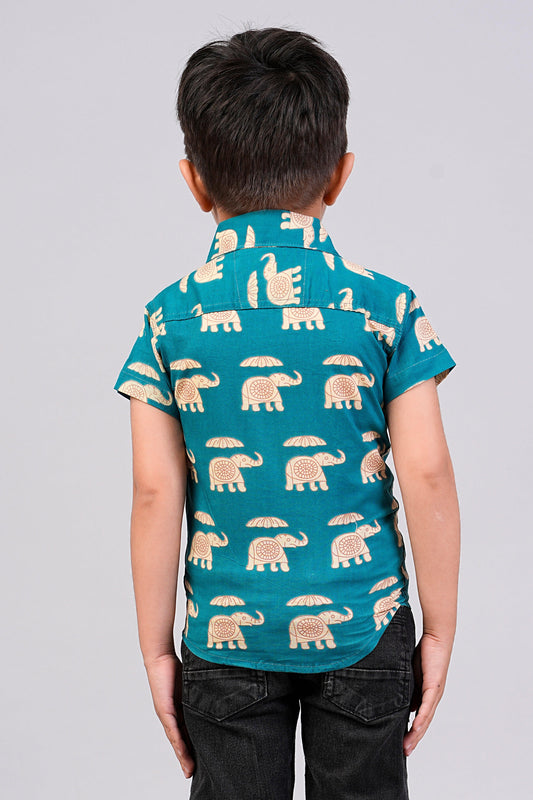 Boy's Ethnic Camel Printed Half-Sleeves Shirts