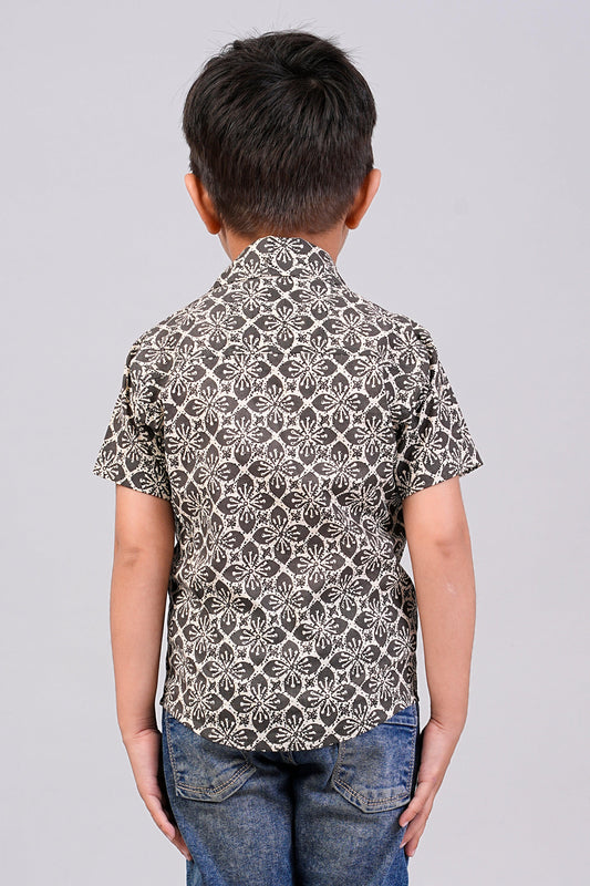 Boy's Ethnic Buti Printed Half-Sleeves Shirts