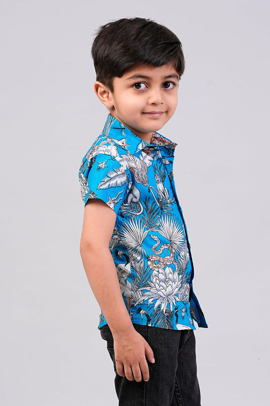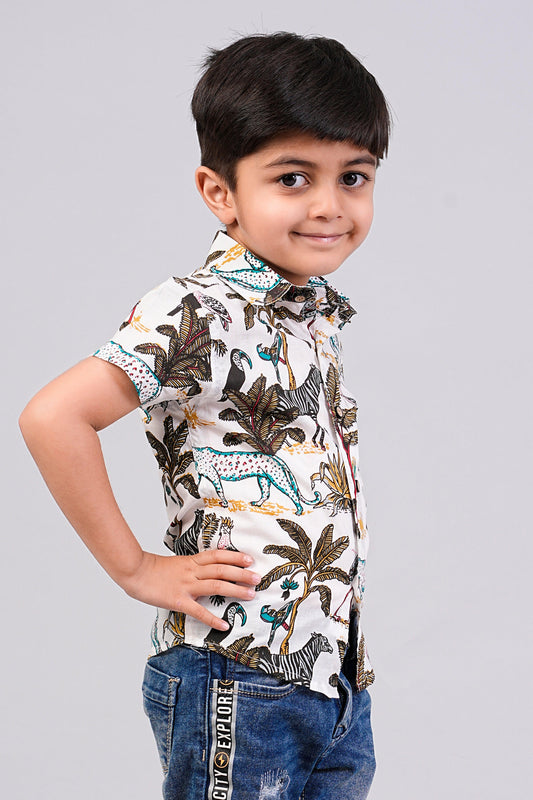 Boy's Ethnic Jungle Printed Half-Sleeves Shirts
