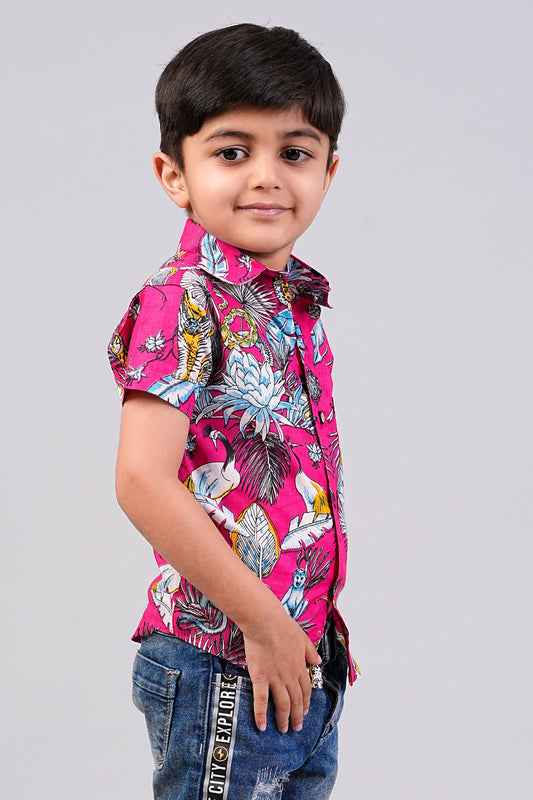 Boy's Jungle Printed Half-Sleeves Shirts