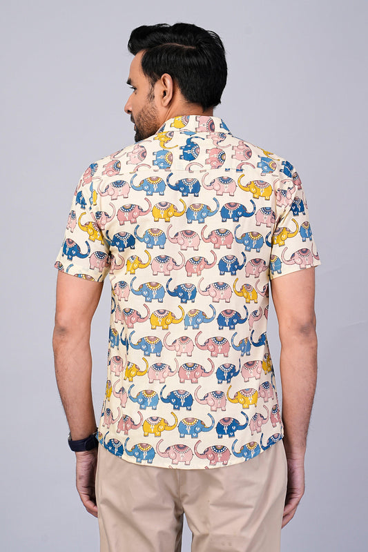 Boy's Multi Elephant Printed Half-Sleeves Shirts