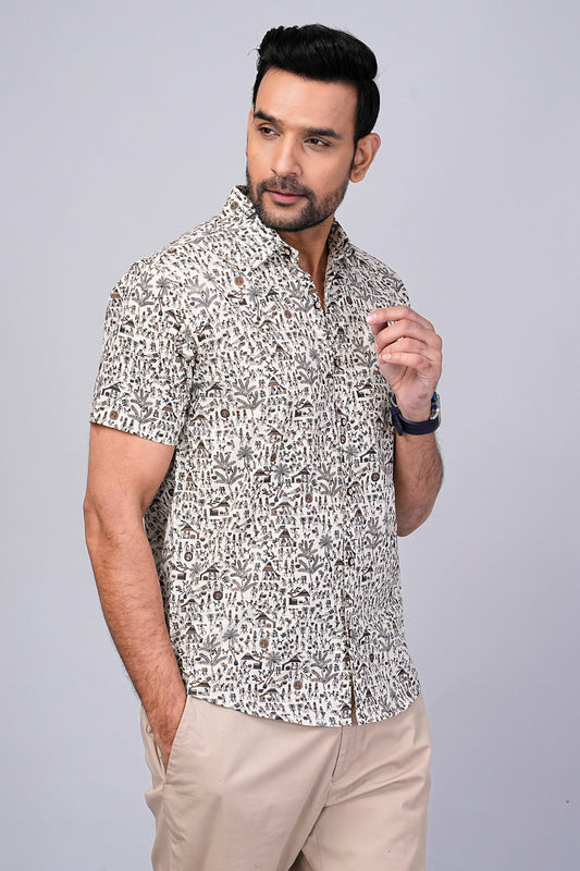 Men's Ethnic Motif Printed Half-Sleeves shirts