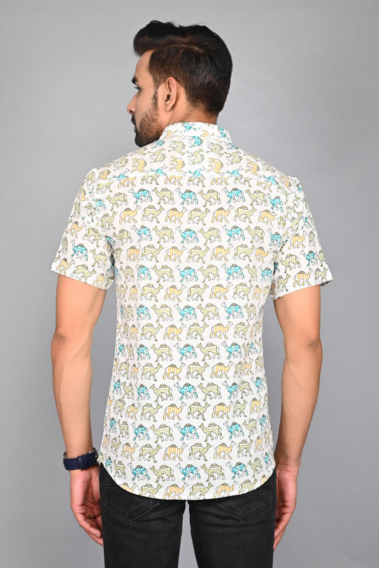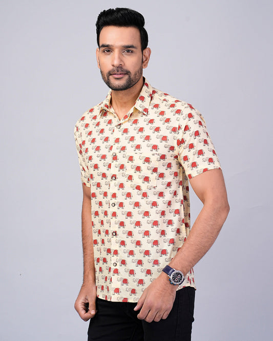 Men's Elephant Ivory Color Printed Half-Sleeves shirts