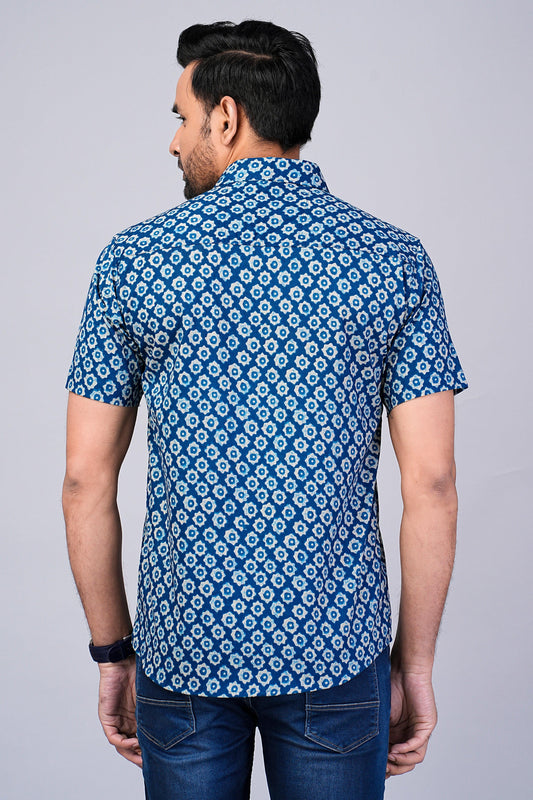 Men's Ethnic Indigo Printed Half-Sleeves shirts