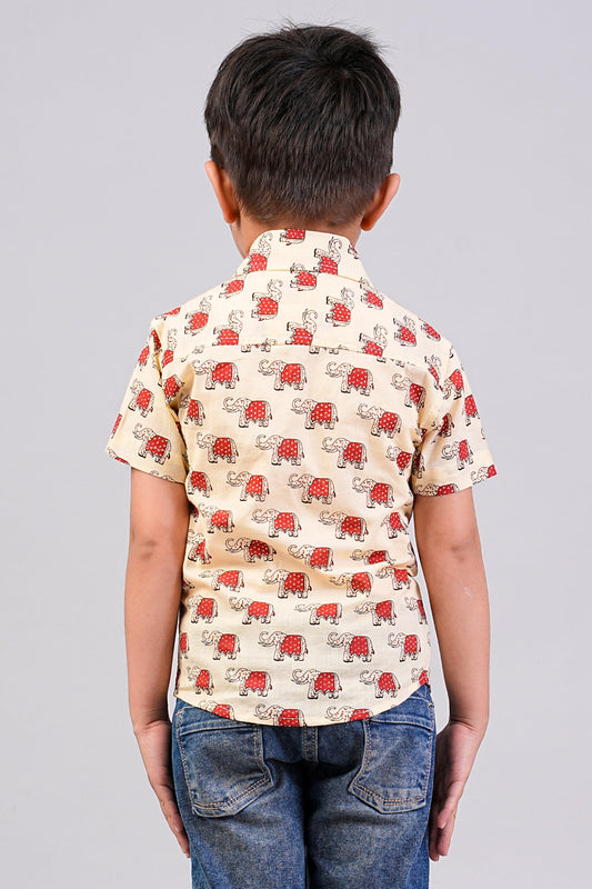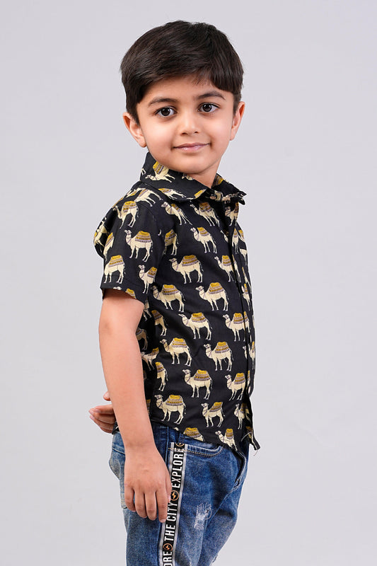Boy's Ethnic Camel Printed Half-Sleeves Shirts
