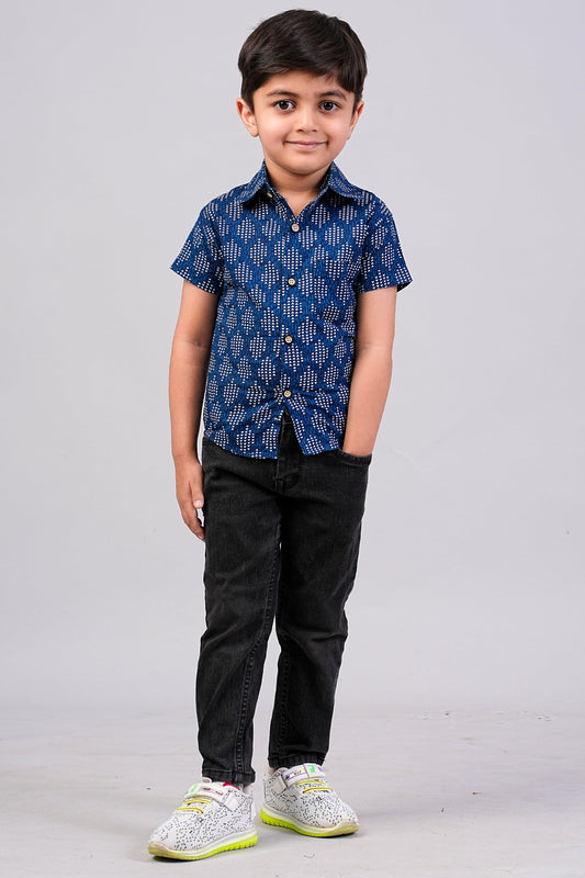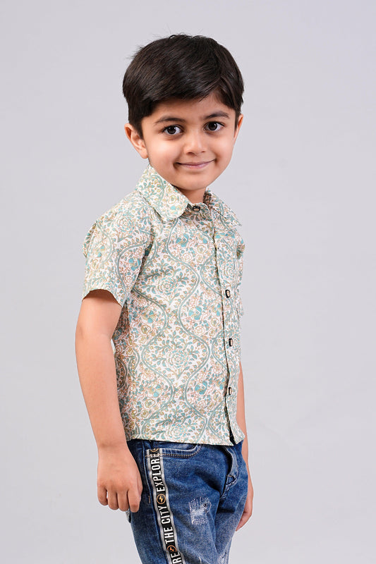 Boy's Ethnic Leaf Printed Half-Sleeves Shirts