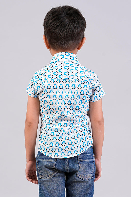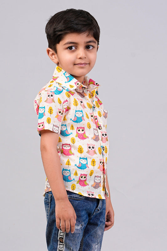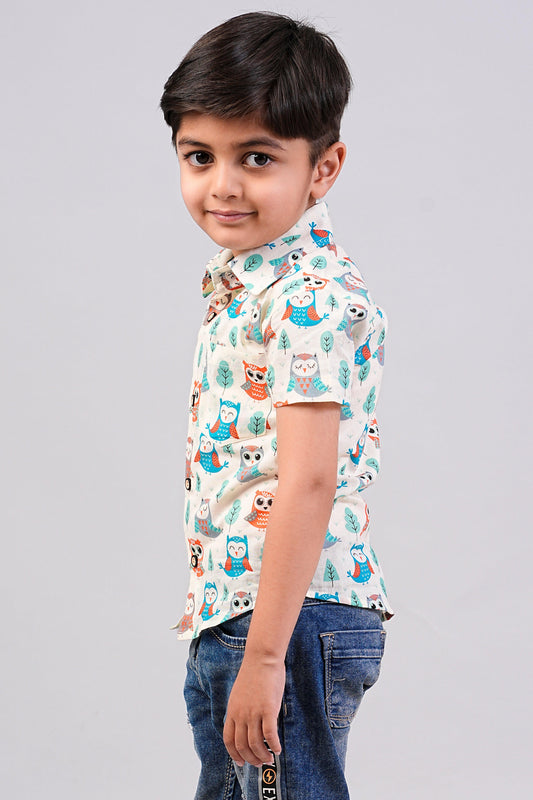 Boy's Ethnic Owl Printed Half-Sleeves Shirts