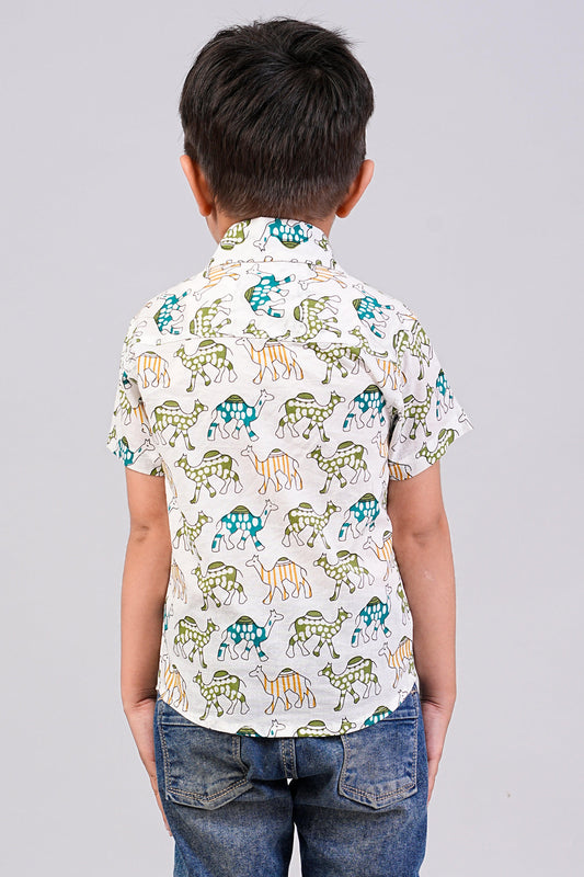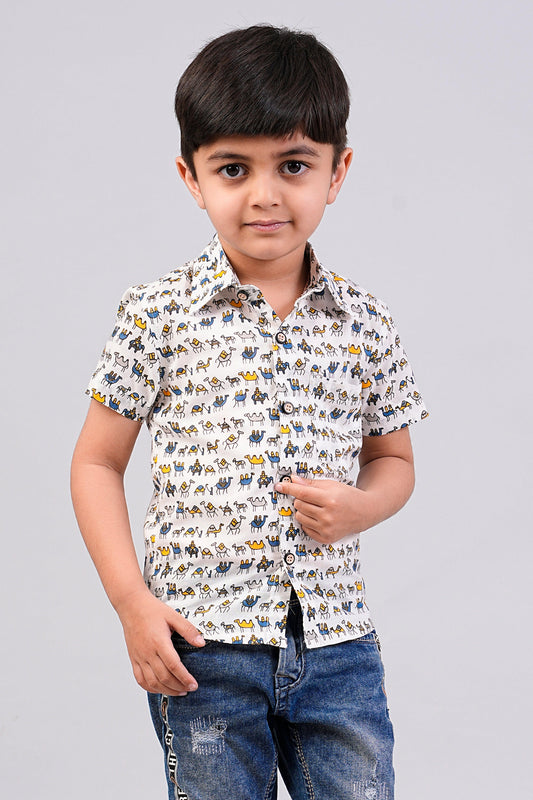Boy's Multi Camel Printed Half-Sleeves Shirts