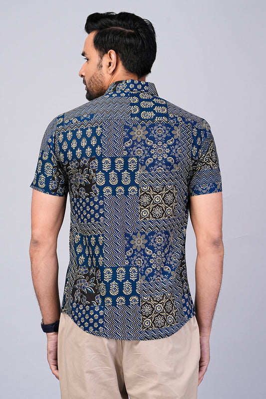 Men's Patch Work Indigo Printed Half-Sleeves shirts
