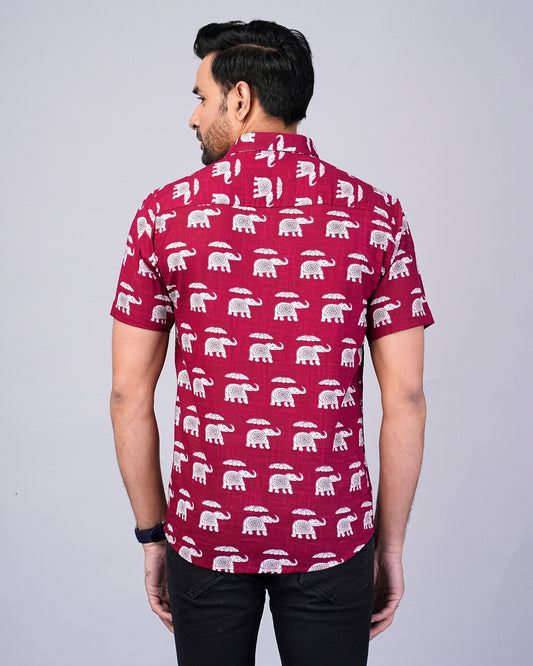 Men's Elephant Maroon Color Printed Half-Sleeves shirts