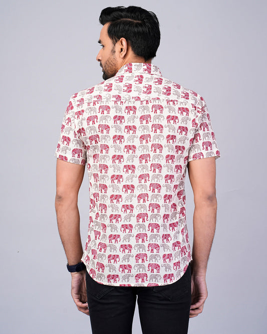 Men's Elephant Red & Grey Printed Half-Sleeves shirts