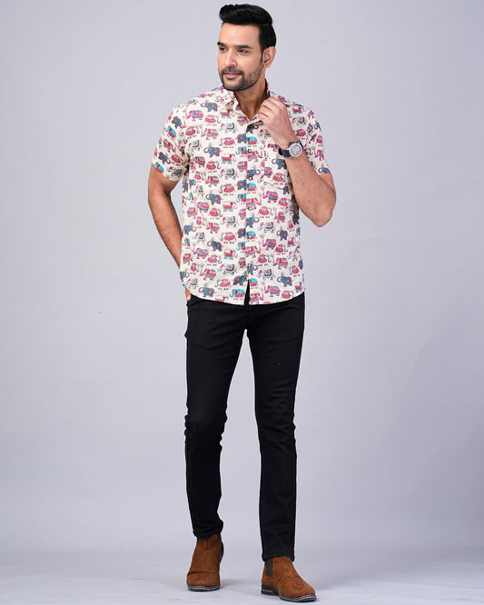 Men's Elephant Multi Color Printed Half-Sleeves shirts