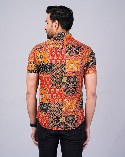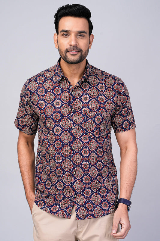 Men's Ethnic Ajrakh Printed Half-Sleeves shirts