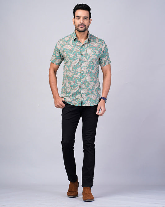 Men's Sage-Green Paisley Printed Half-Sleeves shirts