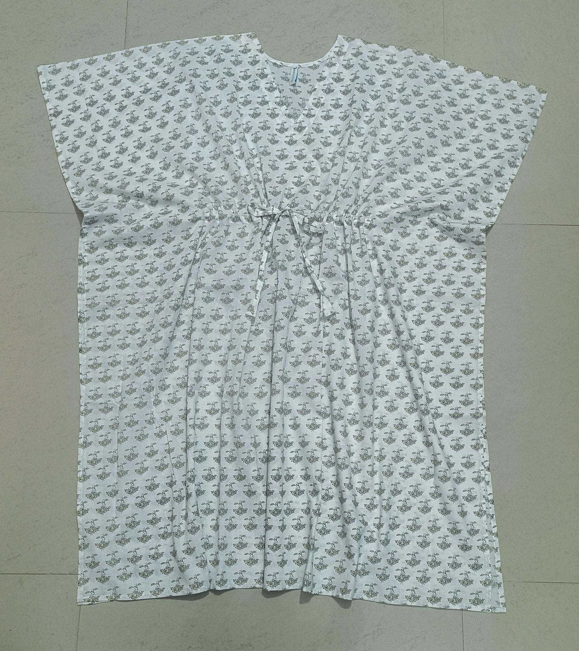 Printed Kaftan Dress, 100% Cotton Fabric, Knee Length Of Kaftan Dress, Multi Color ,Occasion /Usage Sleepwear/Night/Casual, Kaftan Sleeve, V-Neck, Kaftan Shape